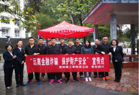 本网讯 近年来,“校园贷”乱象丛生,高息放贷、暴力催款等侵害学生合法权益的校园金融诈骗现象层出不穷。为帮助我校学生树立理性消费观,防范校园不良网络贷款的出现,进一步提高在校学生对金融诈骗违法行为的防范意识和应对能力,10月12日中午,保卫处携手贵阳银行工作人员,在校内开展主题为“远离金融诈骗保护财产安全”的防诈骗金融知识宣传活动。