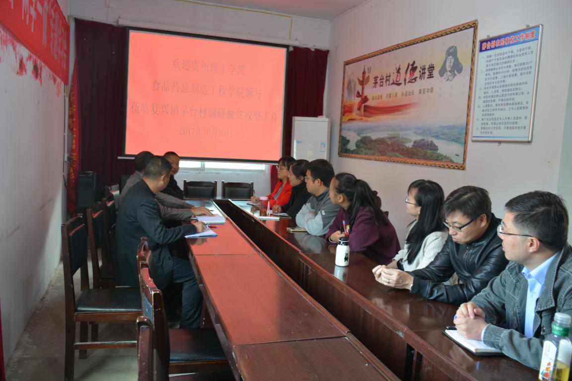 茅台村支部书记、脱贫攻坚指挥所副所长唐友红向探访教师一行介绍了茅台村村组基本情况、茶叶种植规划、全村贫困人口及2017年计划脱贫人口等信息。驻村第一书记张仁顺向教师们介绍了近年来茅台村开展扶贫工作情况。