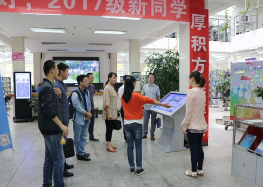 本网讯 (图书馆 李幸)2017年9月6日下午,贵州电子信息职业技术学院图书馆馆长江心一行4人来我校图书馆进行考察调研,就我馆的存储虚拟化平台使用情况、采访编目等业务管理经验进行考察。图书馆副馆长刘瑞及技术部馆员陪同参观了我校存储虚拟化平台系统、书库、电子阅览室及电子资源设备,并开展了座谈。
