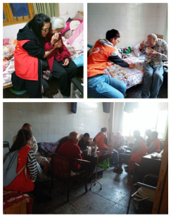 志愿者们为老人们送去了生活用品及水果点心,在活动中,志愿者们分工明确,有的和老人交流谈心,有的帮老人穿衣、按摩,有的陪老人下象棋、看电视,还有的为老人们准备午餐。