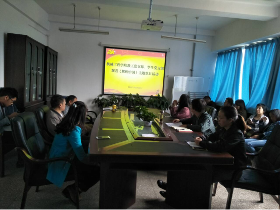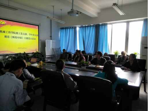 10月13日下午,机械工程学院教职工党支部、学生党支部全体党员开展观看《辉煌中国》专题纪录片党日活动,迎接十九大的召开。