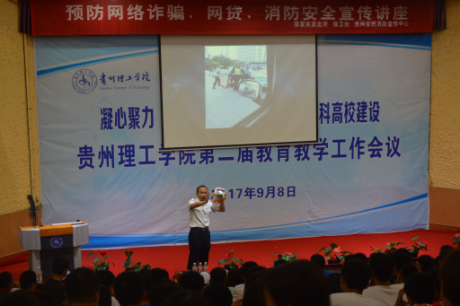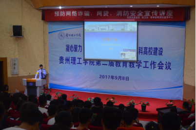 9月26日晚,学校所在辖区蔡家关派出所蒋继警官、贵州安民消防知识宣传中心教导员李祥受邀走进逸夫小报告厅,为我校300余名17级新生代表带来“预防网络诈骗、网贷及消防安全”专题讲座。