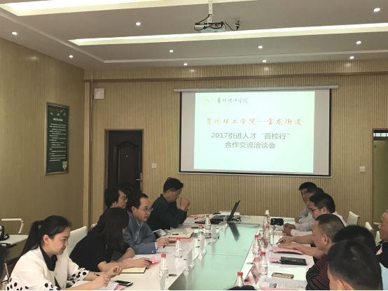 本网讯(招生就业处崔美娟)5月23日下午, “贵州理工学院——宝龙街道‘百校行’合作交流洽淡会” 在学工楼二楼会议室举行。深圳市龙岗区宝龙街道公共事务中心携区内九家企业代表走进贵州理工。