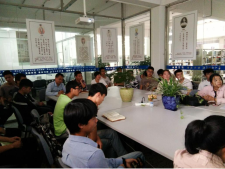 本期读书演讲分享会由杨鑫、黄秀明等5名同学进行分享交流,同学们分别就“大学该怎么读”、“我们的家”、“手机的利与弊”、“分享Photoshop”、“经济全球化趋势”五个主题进行精彩演讲。演讲者注重和听众的互动交流,尤其对上课是否能够使用手机,有效的学习方法是什么等问题进行集中讨论,大家各抒己见,碰撞思想,现场十分热烈。
