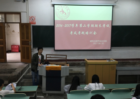 本网讯(建规学院 徐波)临近期末,为严肃考风考纪,增强学生安全意识,6月30日下午,建筑与城市规划学院在二教112室举行考风考纪暨安全教育大会。全院学生现场签订诚信考试承诺书。