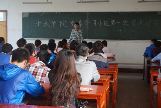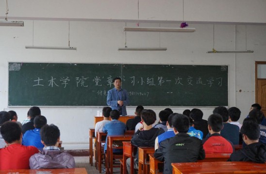 本网讯 4月12日上午,我校机关第七党支部在一教211教室组织开展土木工程学院入党积极分子党章学习小组第一次交流学习。校党委组织部副部长卢文雄、机关第七党支部杨文斯老师以及学生党员参加了本次交流学习会。